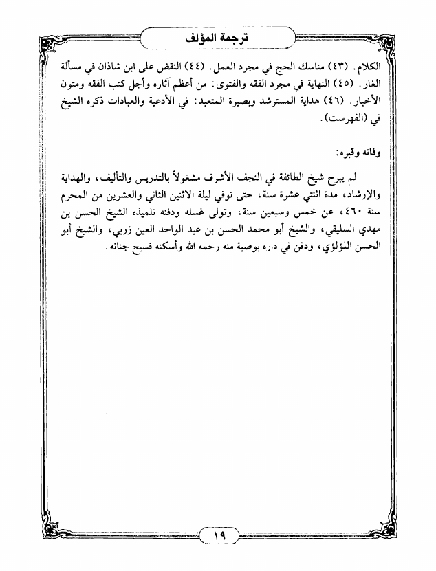 شيخ الطائفة أبي جعفر محمد بن الحسن الطوسي